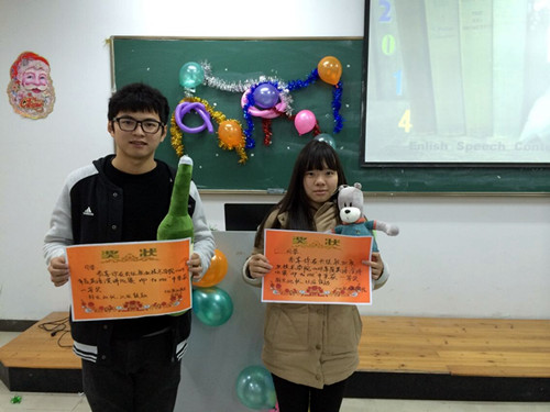 一等奖2名:顾敏浩(14金融与投资1班)、刘静(14商务英语1班)