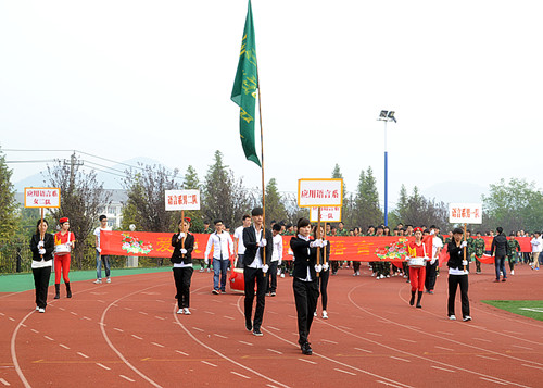 伴随着激昂的运动员进行曲,国旗护卫队、彩旗队、裁判队和学院行政教职工学院各系方阵依次入场。各系同学们面带微笑、英姿飒爽,整齐变换的队形是他们热情的释放,嘹亮激情的口号表达出他们对“更高更快更强”的渴望。