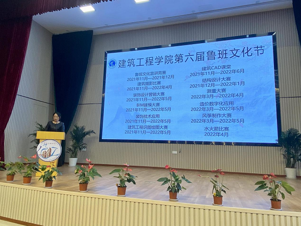 叶智英向大家具体介绍了本届鲁班文化节的活动,希望所有同学都能够在鲁班文化节中尽情展示自己的才华,培养创新实践能力,提升匠人精神和职业素养。