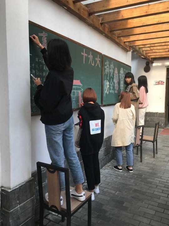 为老人出黑板报,展示十九大会议内容及消防安全知识为老人出黑板报,展示十九大会议内容及消防安全知识