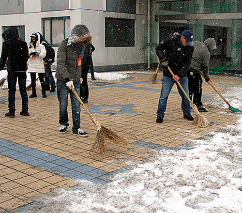 我院“一体两翼”、各系学生干部积极参与铲雪活动