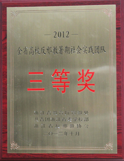 我院获得浙江省2012年度全省高校反邪教暑期社会实践团队三等奖