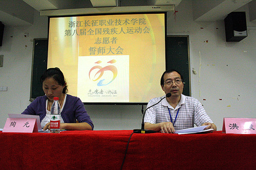 誓师大会在第八届残运会会歌“我们都一样!”中拉开帷幕。会议由学院第八届残运会志愿者服务领导小组办公室主任陶元主持召开。在会上,学院党委副书记、学院第八届残运会志愿者服务领导小组组长洪骏做了重要讲话。他表示,我院将有236名志愿者承担本次残运会中象棋比赛的志愿者服务工作。志愿者的经历是一段难忘而珍贵的历程,希望志愿者能在此见证自己的光荣和梦想。随后他对志愿者们提出了四点要求:一是珍惜机会,抓住契机,求知识,提升自我能力;二是服务过程中既要有积极向上的精神风貌又要体现耐心与细致;三是大力宣扬和弘扬我院的优良传统;四是严格要求自己,注意安全。并预祝第八届残疾人运动会能在所有志愿者的共同努力下,圆满完成。